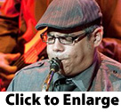 Cuban saxophonist César Lopez performs with Exodus Steel Orchestra at the 2010 Steelpan and Jazz Festival on Saturday night at Queen's Hall. Photography by Mark Lyndersay.