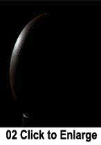 Fielding a request from the floor, I move the strobe to roughly 135 degrees, which gives a cool rim light to the egg. The cool "new moon" or "Alien" effect, depending on your tastes, reduces the light to a bright highlight, the result of the extreme incident angle between the light and the camera and particularly rich texture where the highlight falls off.